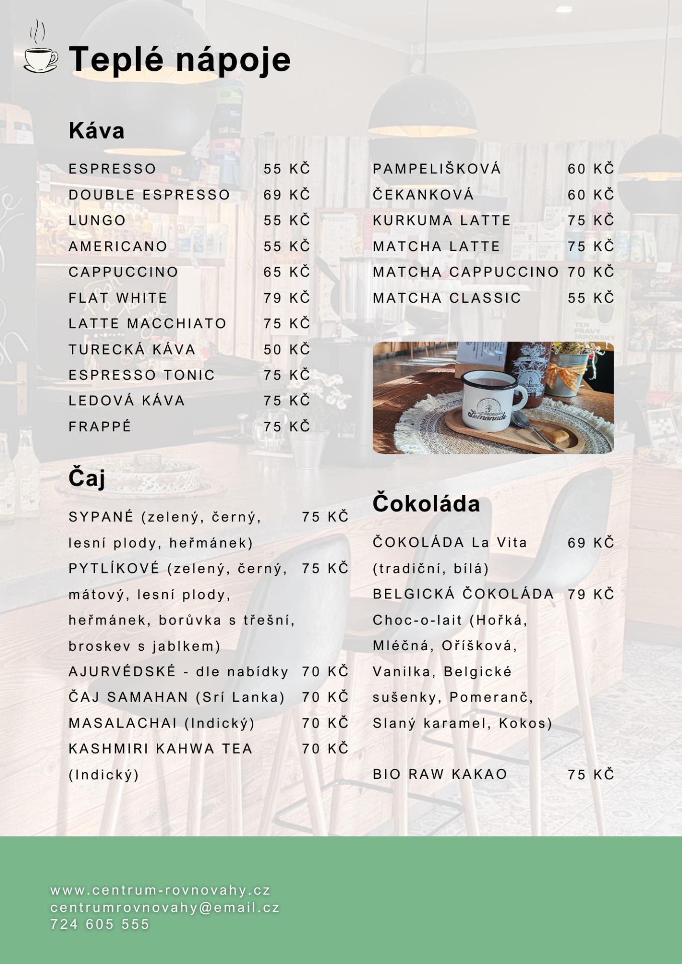 Rádi Vás přivítáme v útulné kavárně na horním podlaží sportovního centra. Věříme, že se budete cítit příjemně v našich malebných prostorech s kapacitou až 30 míst a širokou nabídkou jídel a nápojů.
